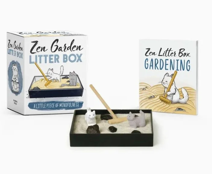 Everything you need for your Bob Ross Zen Garden: 3-5/8 x 2-3/4-inch mini Zen gardening tray, bag of sand, stones, “fan brush” rake, and mini accessories (Peapod the squirrel, snow-topped mountain, log cabin, 2 bristle-brush trees) ·Illustrated mini book: Includes a 32-page 2-1/2 x 3-inch book on Bob Ross's work and how to use your Zen Garden